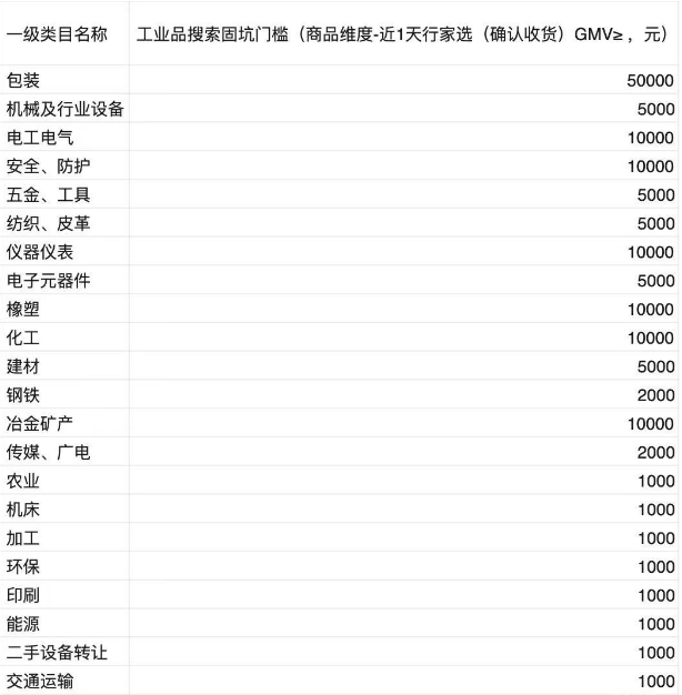 具体的规则很简单:首先,交易额达标。不同行业的达标门槛不一样,如图所示,有的行业要求低,很容易达标。