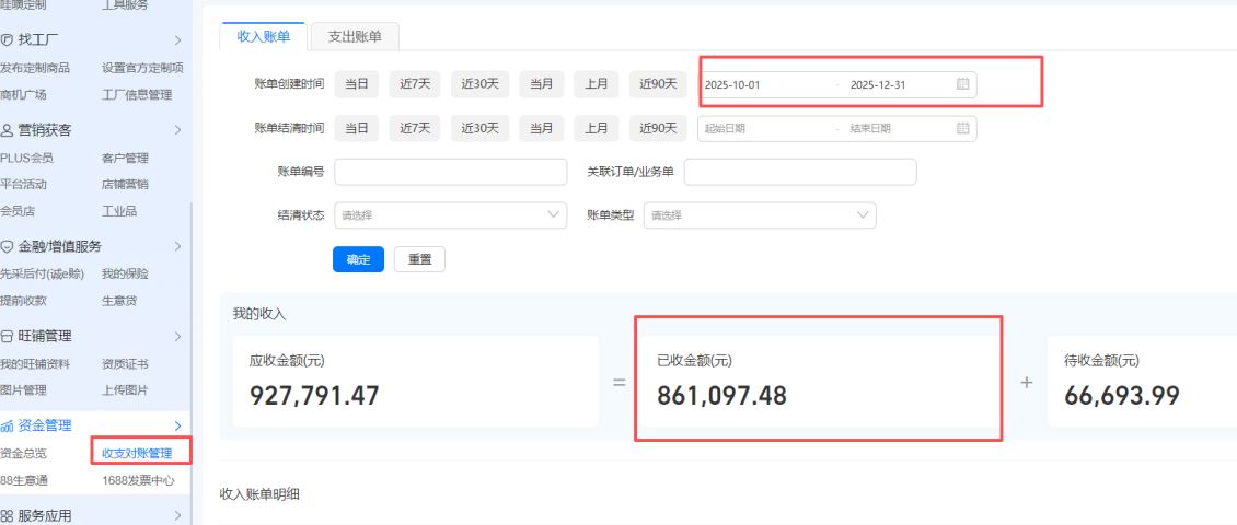 具体操作,你可以登入卖家后台,进入资金管理--收支对账管理,然后时间筛选,选择10.1日到12.31日,账单状态选择已结清,然后导出数据交给财务就行了。