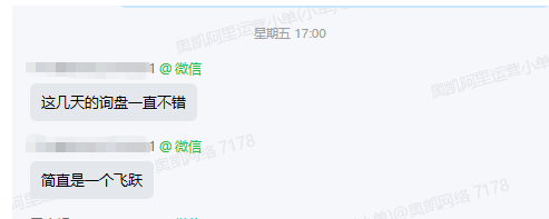 仅仅一周时间,不仅1688询盘增加了122%,而且客户还变得更加精准了。广州的余小姐接连两周,反复肯定我们的1688代运营服务,说这次真的找对人了。